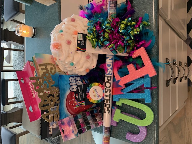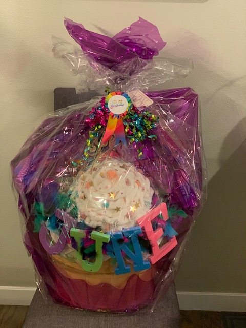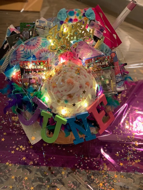 Novelty Designs by Nieka especially knows how to put smile on a child's face! A gift basket filled with goodies they love most and endless amount of confetti and sparkle really adds the cherry on top. This little girl was filled so much joy when she received her fun filled basket!
