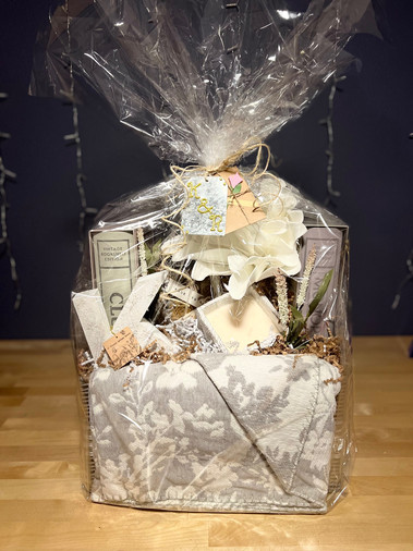 Welcome Home! This couple just purchased their first home! They love board games, so we included two legendary ones "Monopoly" & "Clue" that look like vintage book decor to go with the theme of their home. Along with candles, a throw, and decorative items they can scatter throughout their home.