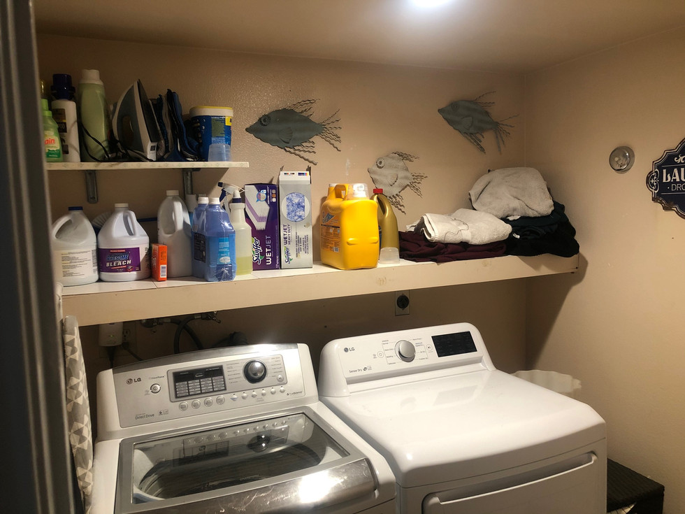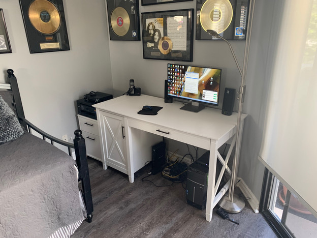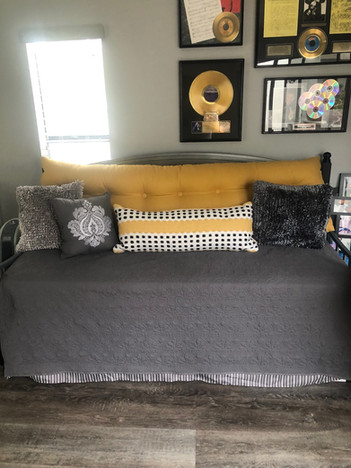 Many people work from home now due to COVID-19, therefore it was necessary for Novelty Designs by Nieka to transition this clients guest room into a functional office working space. We also gave the Laundry Room a nice facelift. This client had plenty of collectable music records that he wanted to utilize, however all of them in one room began to get a little cluttered. We painted the room, decluttered the collectables, and bought some new furniture. The also scattered the collectables' throughout his stair hallway.