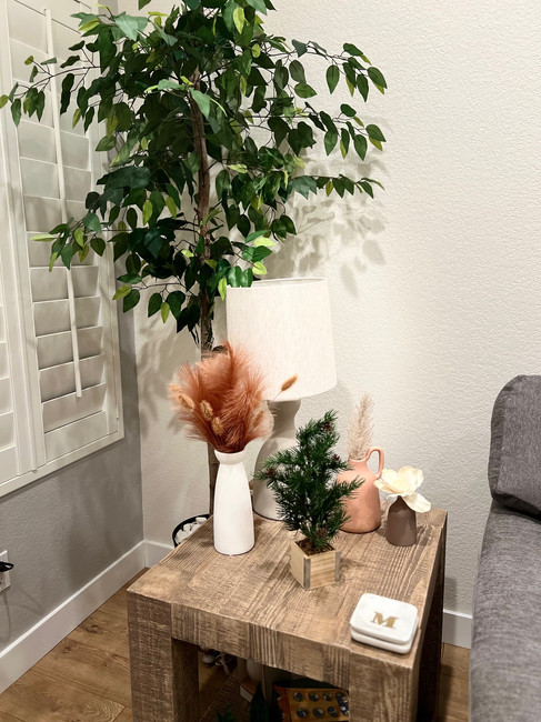 This client wanted to reuse her Christmas decor but to add touches of rust and copper! We also did the viral shower rod garland trick and it worked like magic. Safe to say she loved the results and how it brought elegance and warmth to her home.